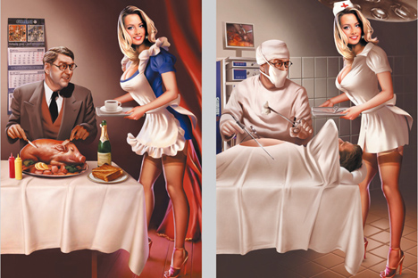 El porno vio la luz en la Unión Soviética justo después de la Segunda Guerra Mundial, cuando la mayoría de las producciones - en secreto- eran destinadas al uso del Ejercito Rojo. Los soldados tenían que pasar meses e incluso años en los países ocupados, lejos de sus familias y esposas, por lo que para poder aliviar el deseo sexual de la tropa tras meses sin tener relaciones sexuales, se comenzaron a distribuir de forma secreta películas eróticas. Las grabaciones habitualmente estaban ambientadas en la vida comunista con títulos como: "Las alegres chicas de los Koljoes" o "A las barricadas mis concubinas". Se trataba de film de muy bajo presupuesto, casi siempre hechos en secreto y con un contenido sexual muy escaso.